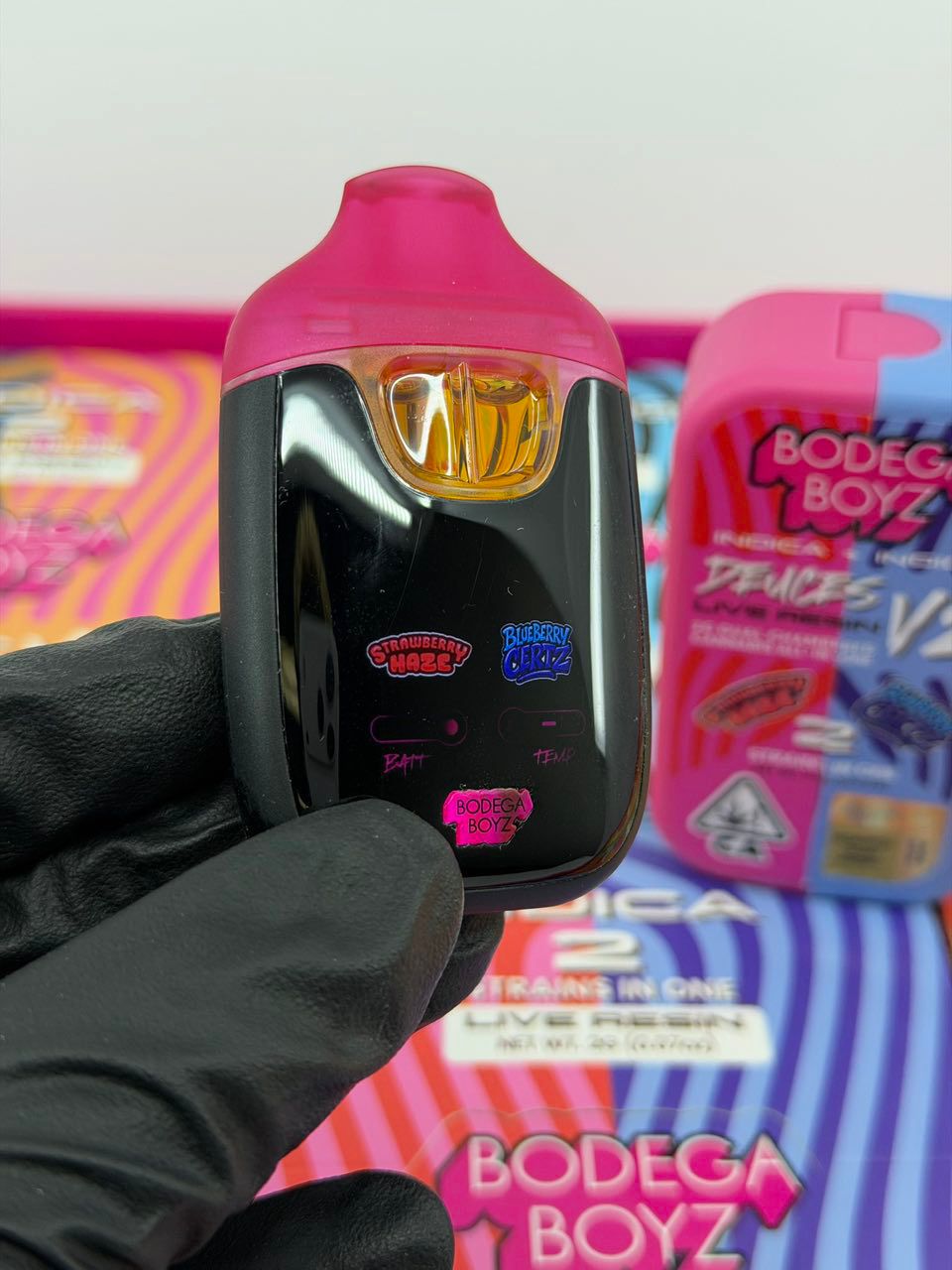 The Bodega Boyz Deuces V2 – Strawberry Haze (Sativa) & Blueberry Certz (Indica) redefines what an all‑in‑one vape can offer. By integrating dual‑chamber technology with two distinct strains, it delivers flexibility, balance, and convenience in one streamlined device.